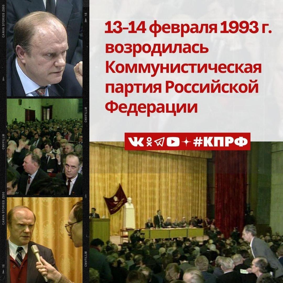 Дата в истории. 13-14 февраля 1993 г. возродилась Коммунистическая партия Российской Федерации