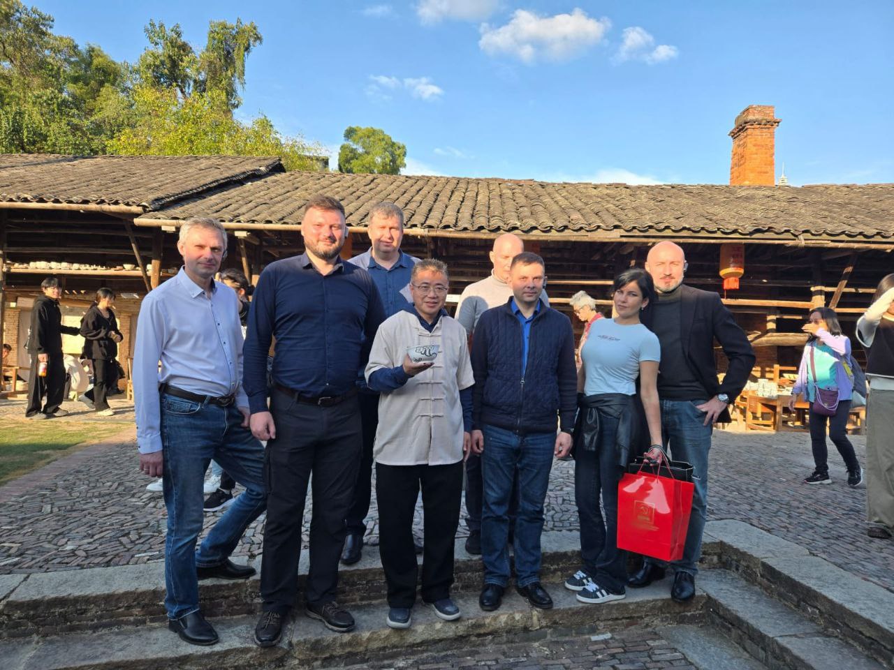 В городе Цзиндэчжэнь делегацию встретили китайские товарищи во главе с госпожой Линь Жун, членом Постоянного комитета партийного комитета города Цзиндэчжэнь, после чего гостям была предоставлена возможность ознакомиться с работой императорского фарфорового дома, в котором недавно проходила выставка, где приняли участие представители более чем 30 стран, в том числе и из России.