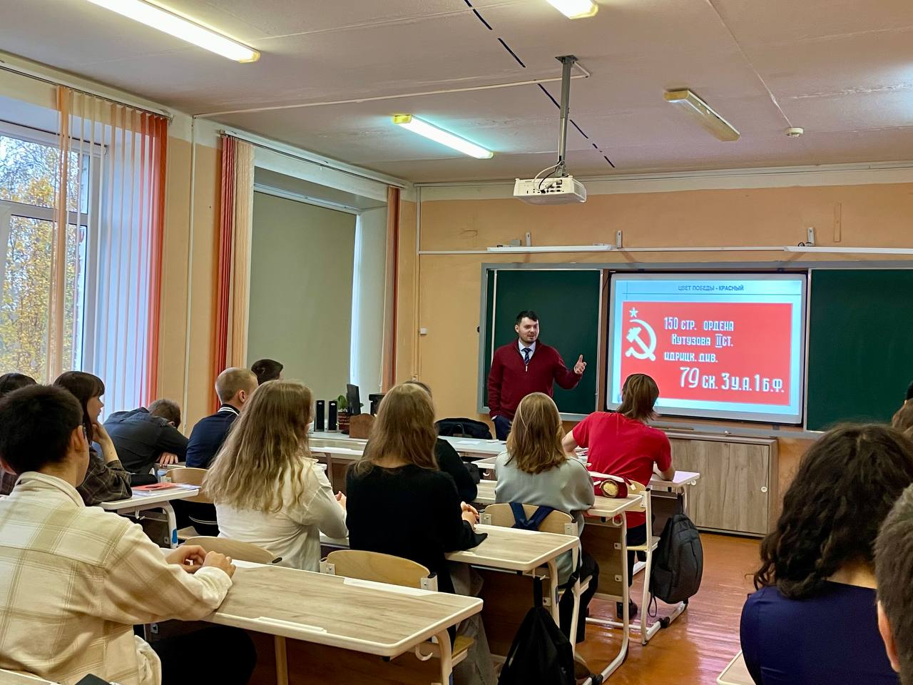 Лидер Карельского отделения Комсомола Никита Ковынев встретился с учащимися Питкярантской СОШ, провел патриотический урок «Знамя нашей Победы».