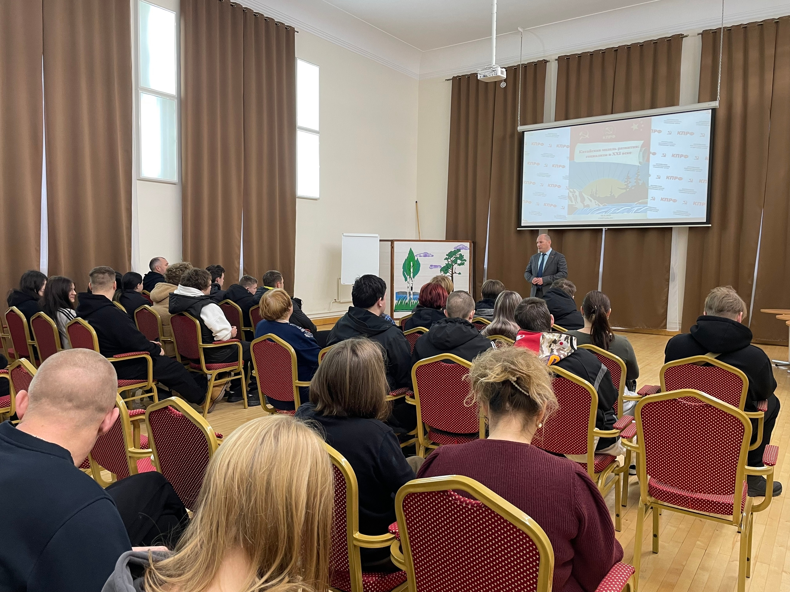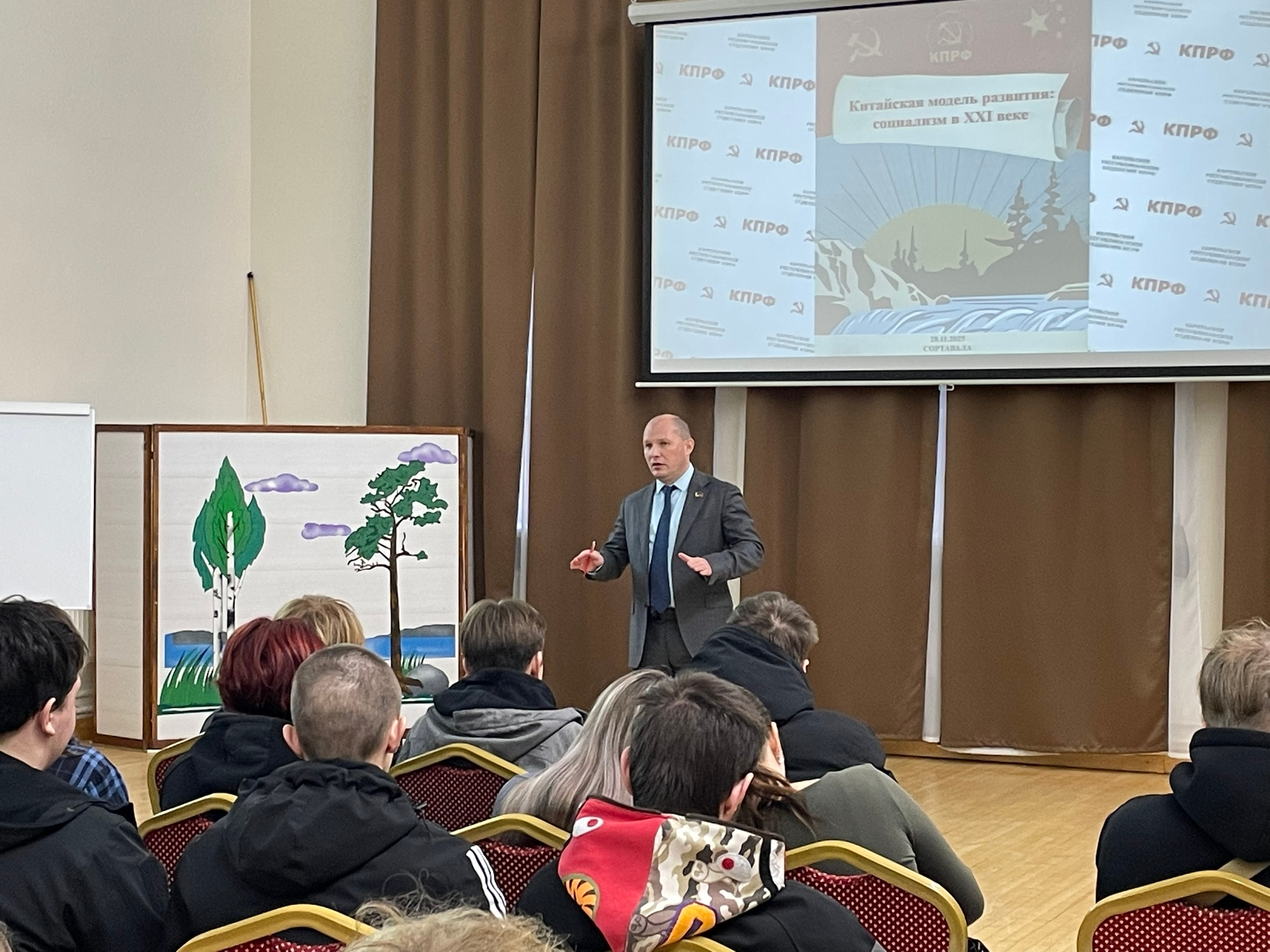 Первый секретарь Карельского рескома КПРФ Евгений Ульянов и лидер комсомольцев Карелии Никита Ковынев встретились с молодежью Сортавалы.