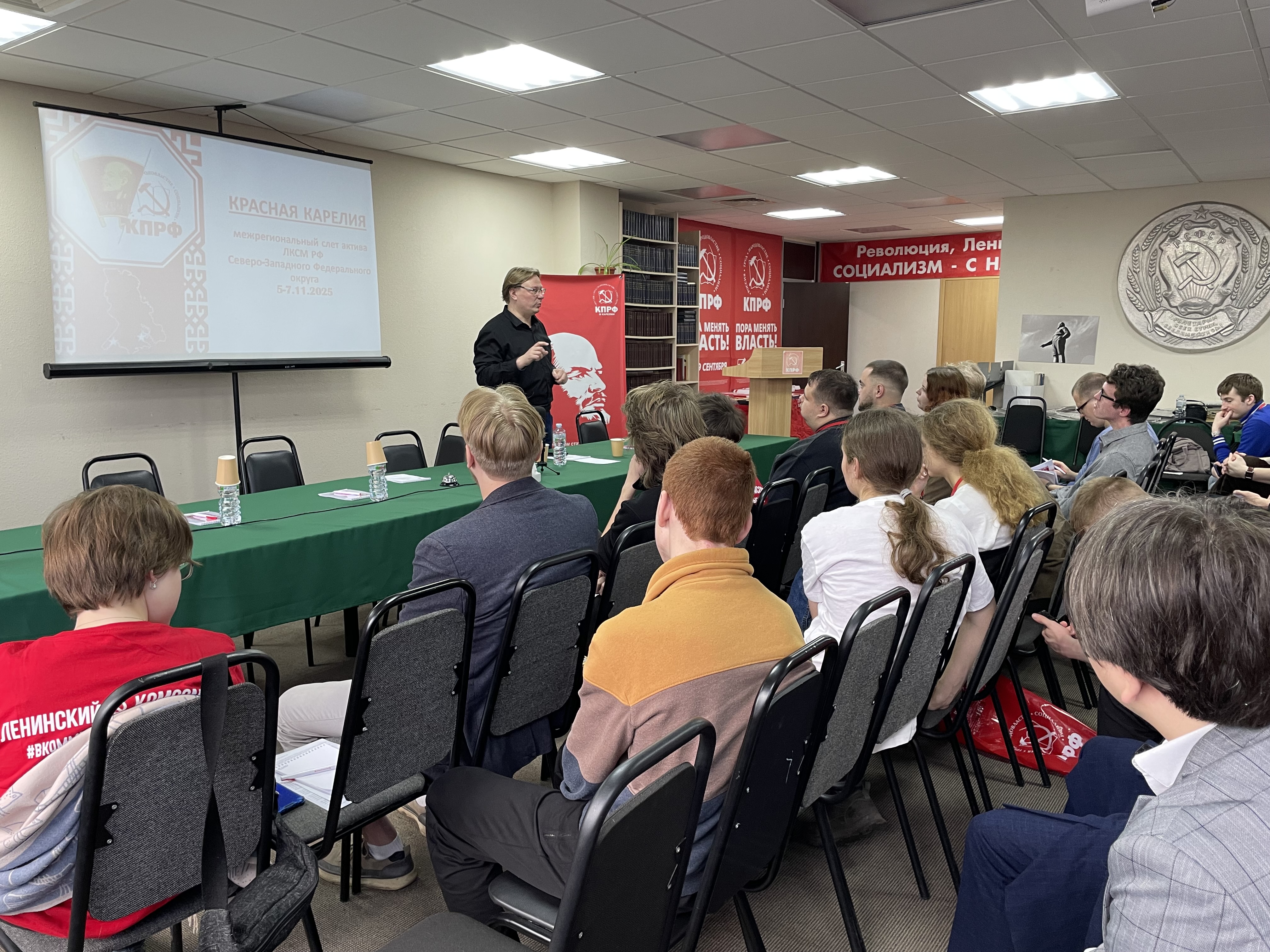 Сегодня перед участниками слёта выступил заведующий Отделом ЦК КПРФ по молодёжной политике, председатель ЦКРК ЛКСМ РФ Ярослав Игоревич Листов. Он - постоянный автор и ведущий цикла передач «Правда против мифов» на канале «Рассвет ТВ». В своих передачах Листов развенчивает мифы о советском государственном и политическом деятеле, создателе партии большевиков Владимире Ильиче Ленине, а также истории социализма. В Петрозаводске Ярослав Игоревич выступил с интересной лекцией о борьбе с фальсификацией истории.