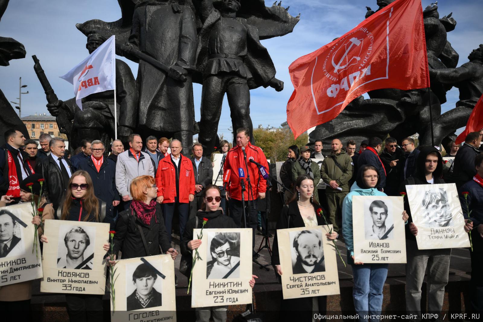 Также в ходе митинга прозвучали выступления члена Президиума ЦК, первого секретаря Московского горкома КПРФ В.А. Царихина, члена ЦК, секретаря Московского обкома КПРФ А.А. Наумова, Председателя Комитета памяти жертв трагических событий октября 1993 года Р.Н. Богданова, лидера «Левого Фронта» А.О. Удальцовой, участника СВО Н.С. Гришина, члена ЦК, секретаря Московского горкома КПРФ Д.А. Парфенова, секретаря ЦК КПРФ В.П. Исакова, секретаря Сталинградского МО КПРФ Москвы В.А. Мысиной.