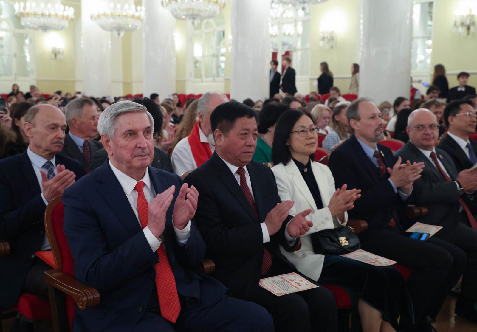 Мы собрались сегодня, чтобы отметить три важные даты: 80 лет Победы во Второй мировой войне, 76 лет образованию Китайской Народной Республики и 76 лет установлению дипломатических отношений между Россией и Китаем.