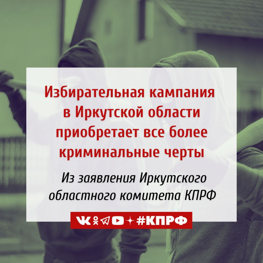 Более того, избирательная кампания в Иркутской области приобретает все более криминальные черты. Вместо того, чтобы в рамках закона и порядка обеспечить конкурентные выборы, предоставив кандидатам равные права и возможности, по надуманным предлогам отстраняются сильные кандидаты от КПРФ, в ход идут запугивания, угрозы жизни и физические расправы.