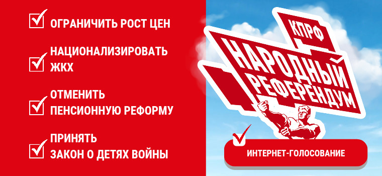 КПРФ считает, что граждане страны вправе выразить своё мнение по важнейшим вопросам, напрямую влияющим на их жизнь и на завтрашний день нашего Отечества. Партия взяла на себя обязательство предоставить людям такую возможность путём организации Народного референдума и призывает всех, кому близка идея прямого народного волеизъявления, принять в нём участие.