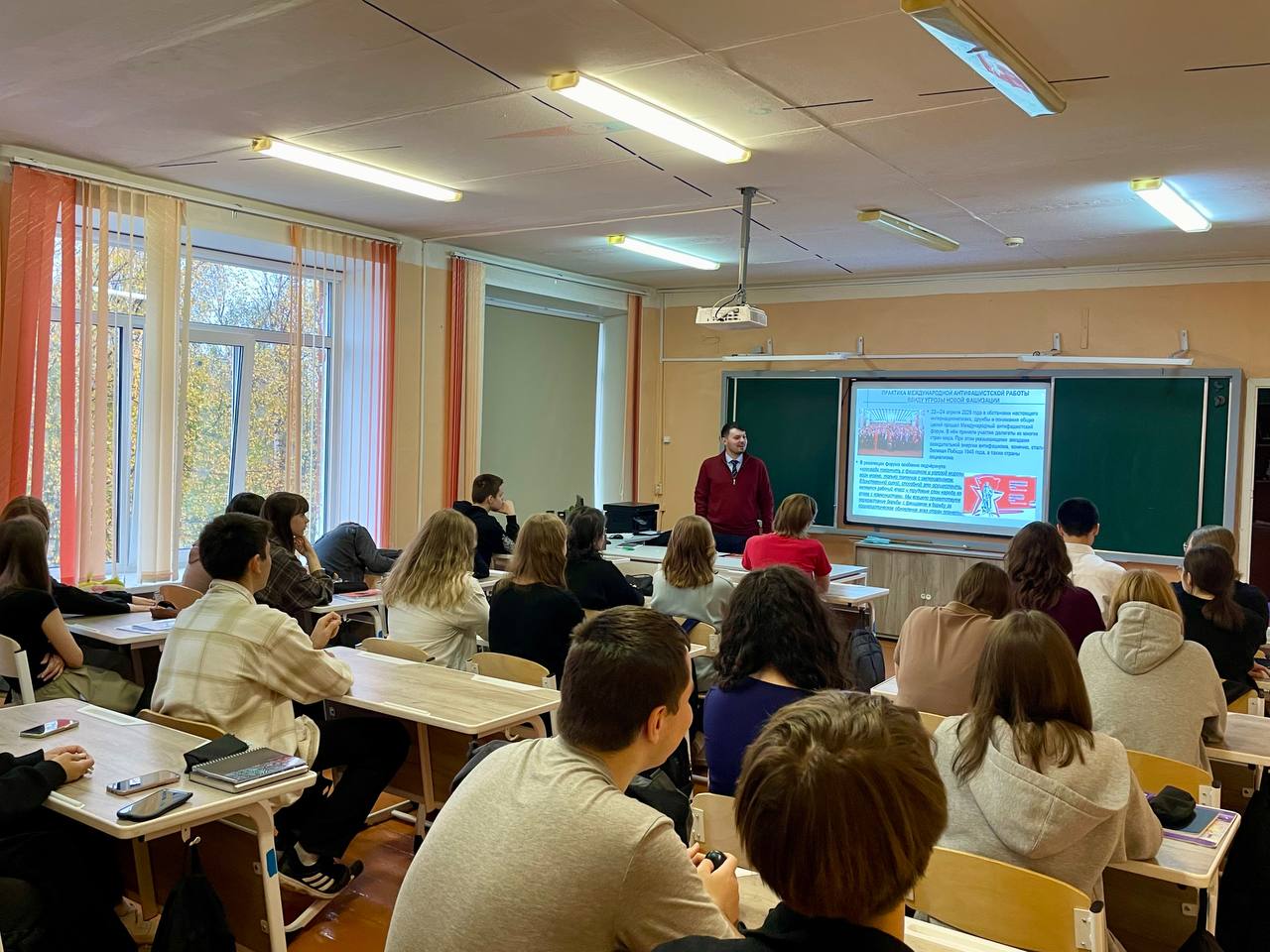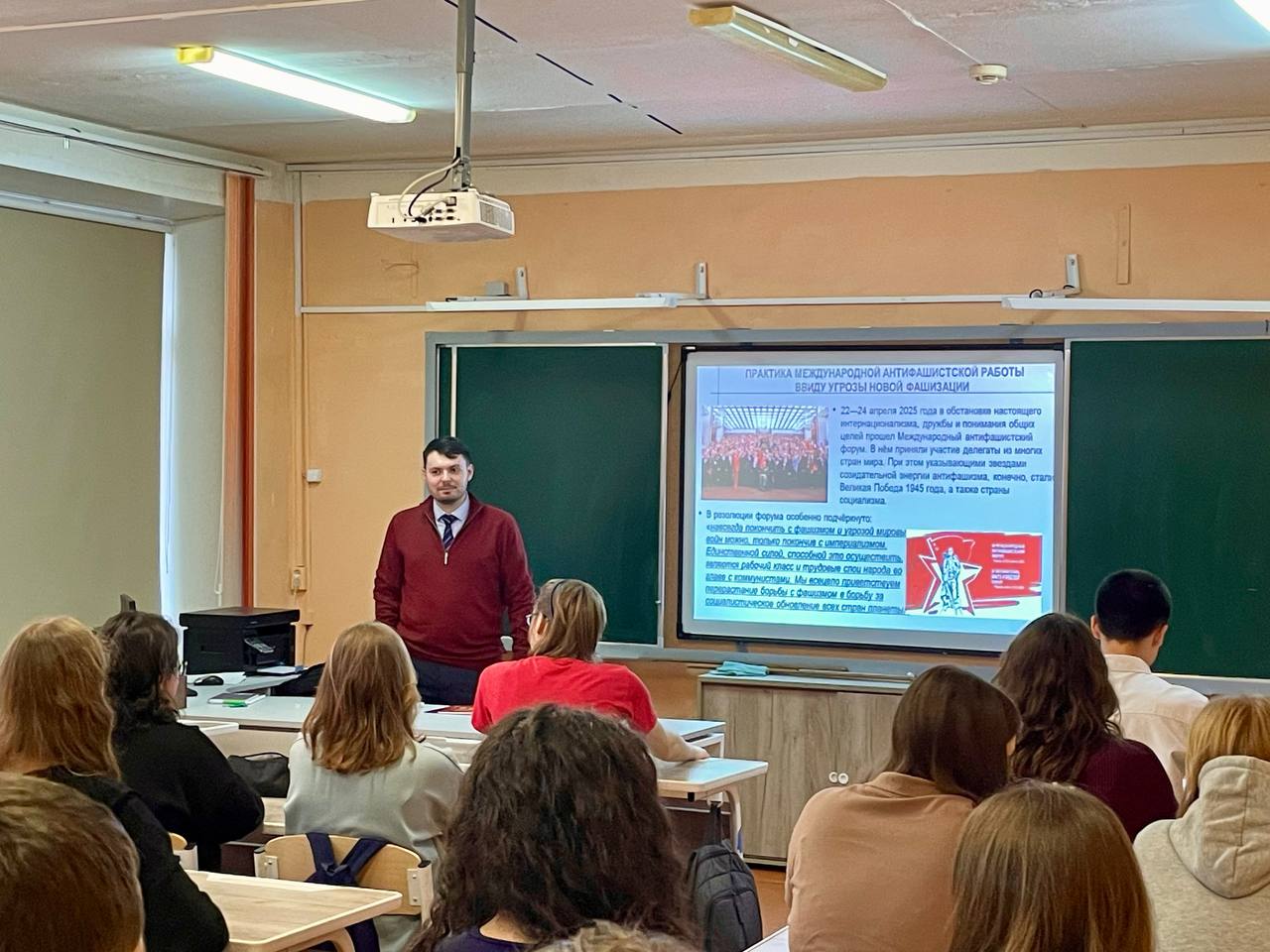 Особое внимание было уделено также рассказу о состоявшемся в этом году в Москве Международном антифашистском форуме и тезисам его Резолюции, о том, что фашистская угроза сегодня опять нарастает, что во многом именно знание истории есть достойной вакциной от этой смертоносной болезни.