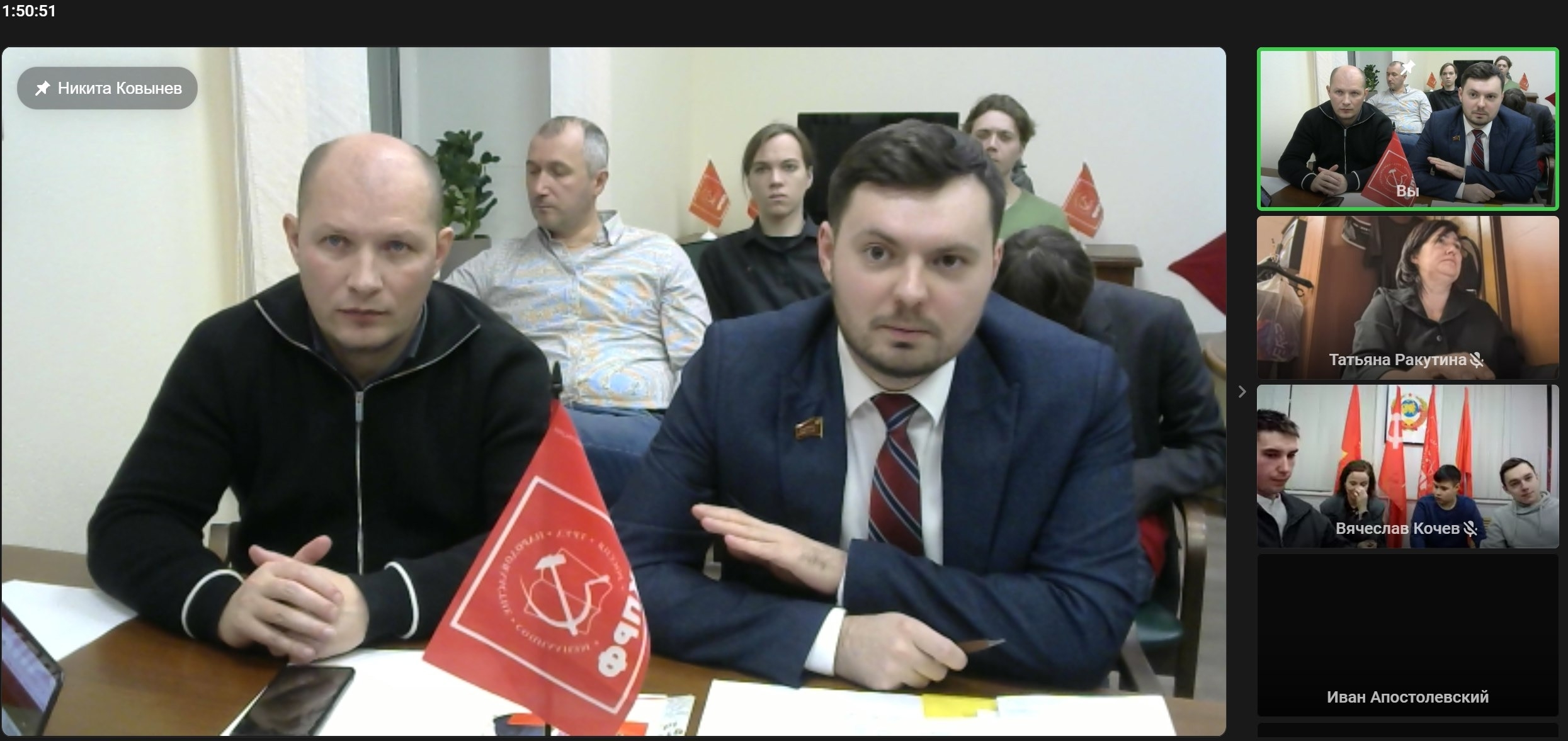 Выступая со вступительным словом от организаторов секретарь Карельского рескома КПРФ, член ЦК ЛКСМ РФ Никита Ковынев напомнил о происходящих в мире процессах. “Нынешние финансовые воротилы рвут со всеми моральными императивами и теперь готовы без всяких стеснений развязать любого уровня военные и социально-политические конфликты, погружая мир в бесконечный хаос и горе. При этом, как заметил 15 ноября прошлого года на II Пленуме ЦК КПРФ лидер нашей партии Г.А.Зюганов: “Российский фронт борьбы за социализм исключительно важен. На наследников партии В.И. Ленина в мире возлагаются особые надежды”. В этой связи, глубокое понимание Программы КПРФ является принципиально важным для нашего комсомольско-партийного актива” - подчеркнул секретарь по идеологической работе карельской парт.организации.