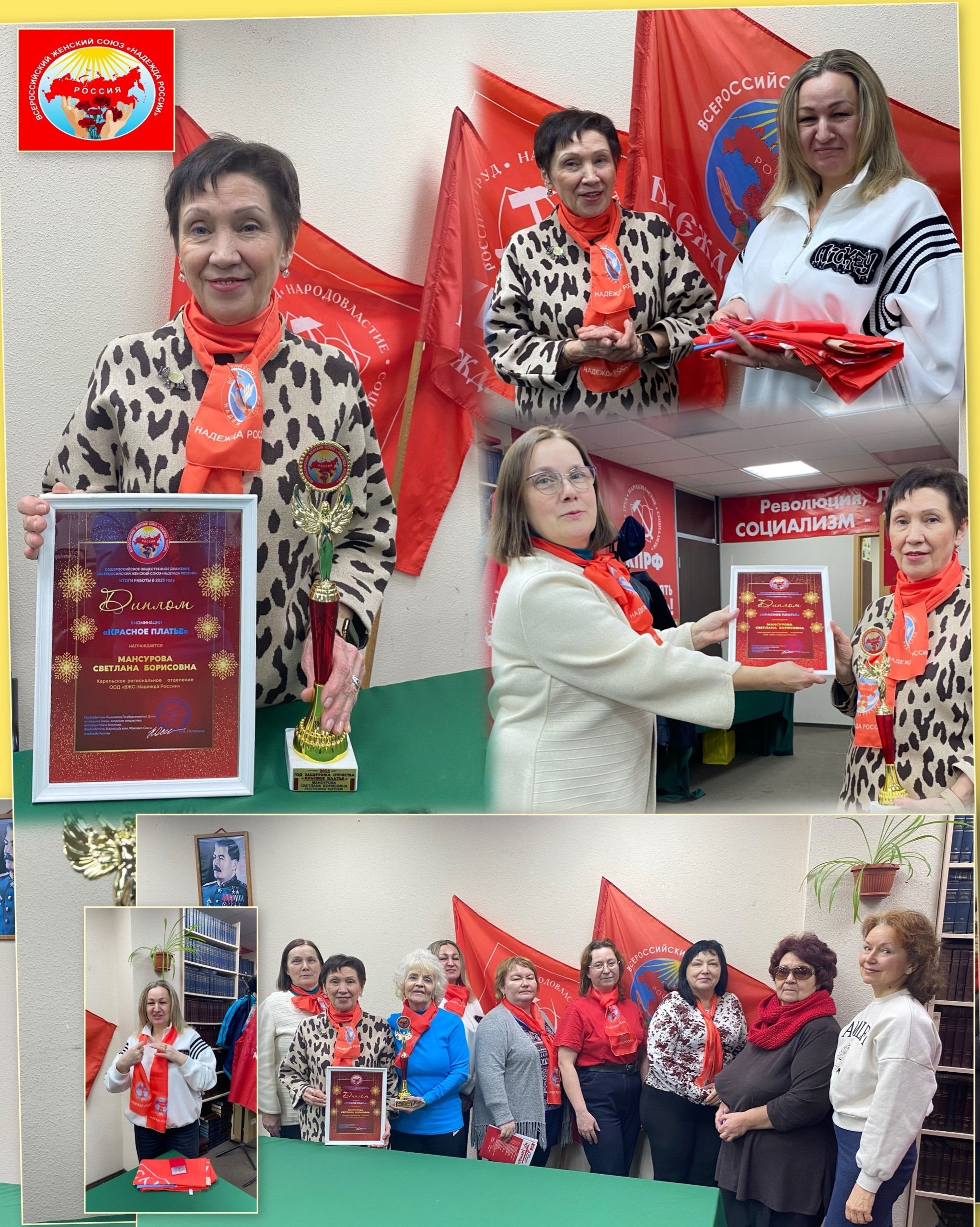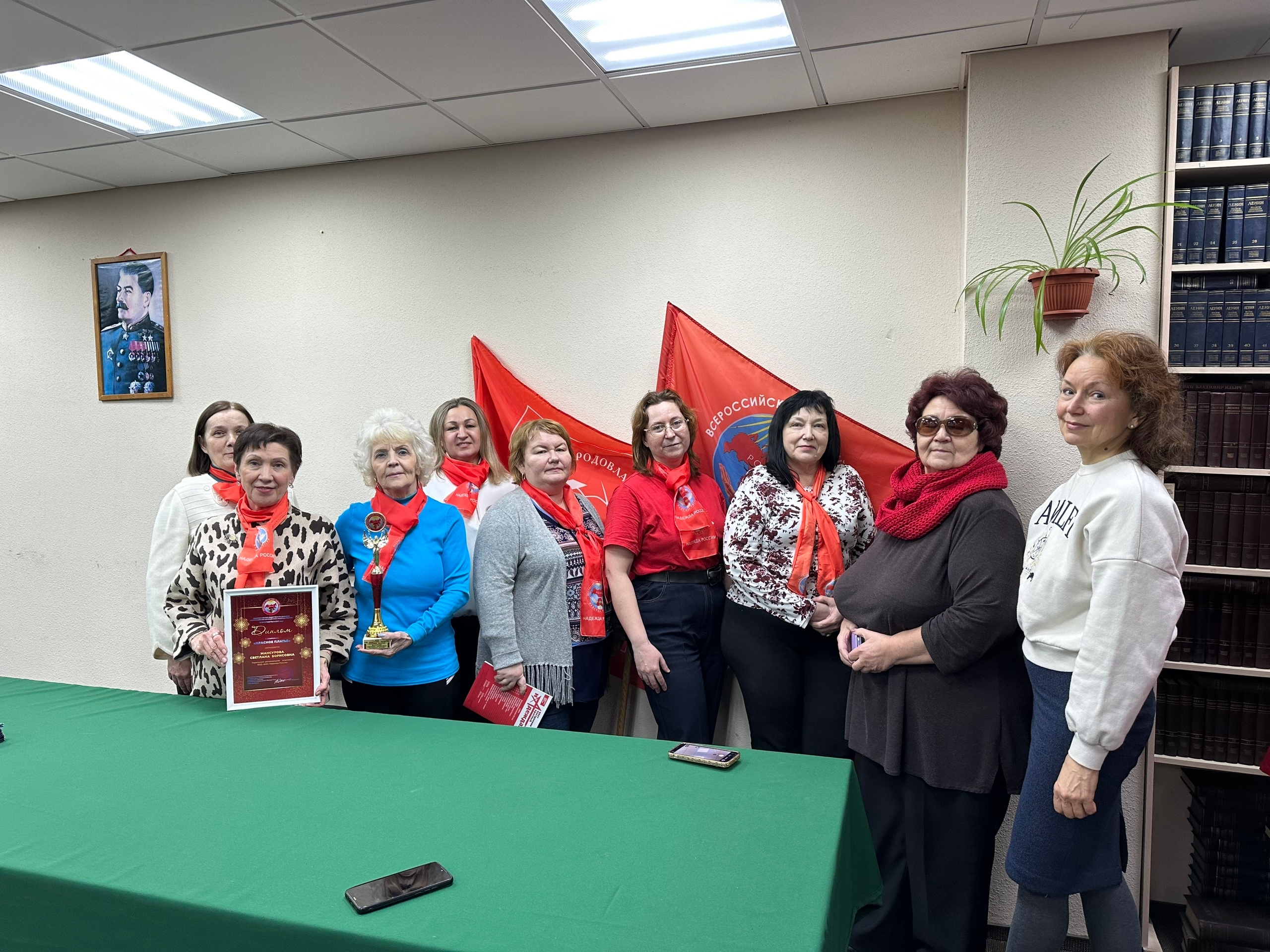 Участницы заслушали доклад о поездке на расширенное заседание Президиума ВЖС в ГД, поделилась о награждении в номинации «Красное платье» , и поздравили с этой наградой!