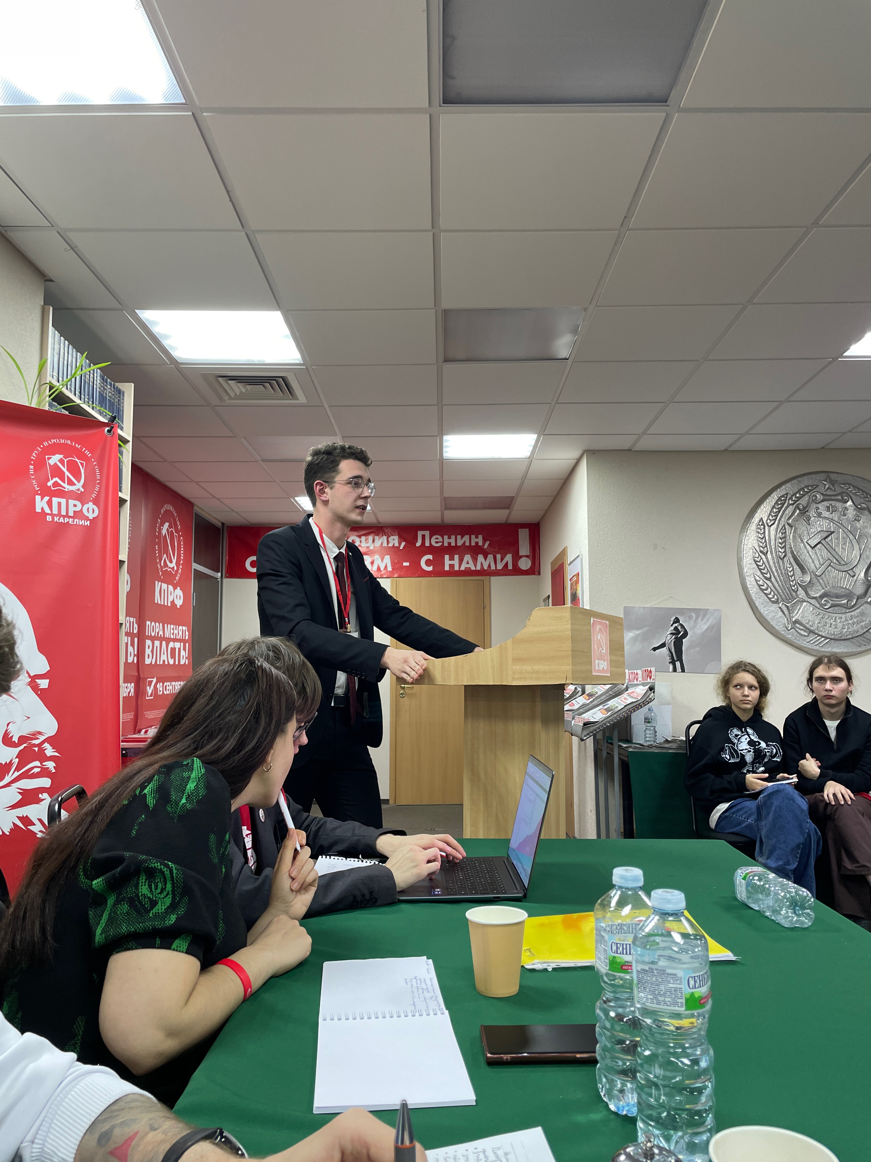 Сегодня перед участниками слёта выступил заведующий Отделом ЦК КПРФ по молодёжной политике, председатель ЦКРК ЛКСМ РФ Ярослав Игоревич Листов. Он - постоянный автор и ведущий цикла передач «Правда против мифов» на канале «Рассвет ТВ». В своих передачах Листов развенчивает мифы о советском государственном и политическом деятеле, создателе партии большевиков Владимире Ильиче Ленине, а также истории социализма. В Петрозаводске Ярослав Игоревич выступил с интересной лекцией о борьбе с фальсификацией истории.