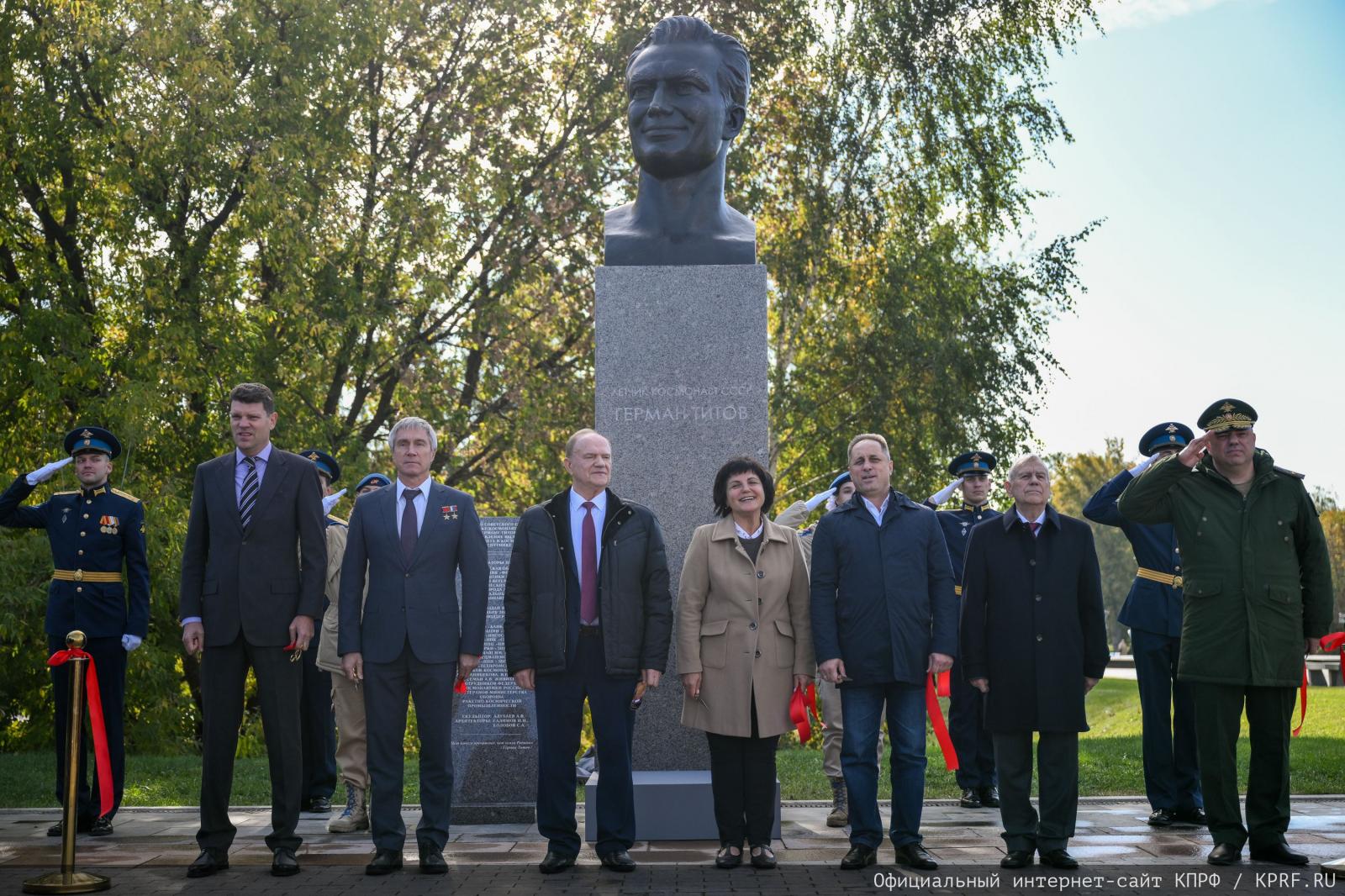 В среду, 1 октября, Председатель ЦК КПРФ Г.А. Зюганов принял участие в открытии бюста лётчику-космонавту Герману Степановичу Титову в Москве на аллее Космонавтов. В церемонии также приняли участие столичные и подмосковные коммунисты во главе с первым секретарем Московского горкома КПРФ В.А. Царихиным и первым секретарем Московского обкома КПРФ Н.И. Васильевым.
